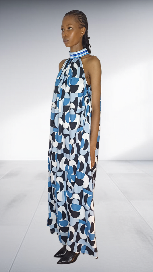 Jasmin Blue Geometric Print Halter Maxi Dress