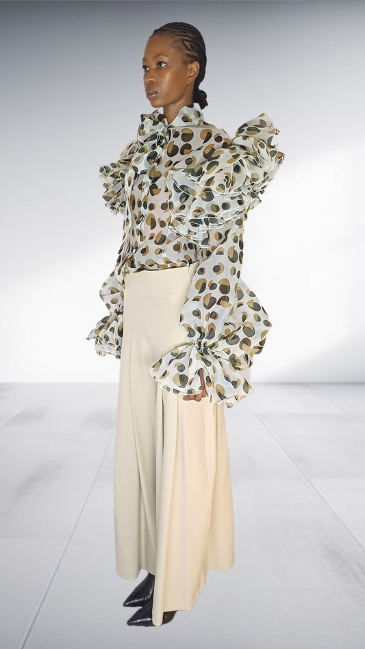 Polka Dot Dramatic Ruffle Sleeve Two-Piece Set