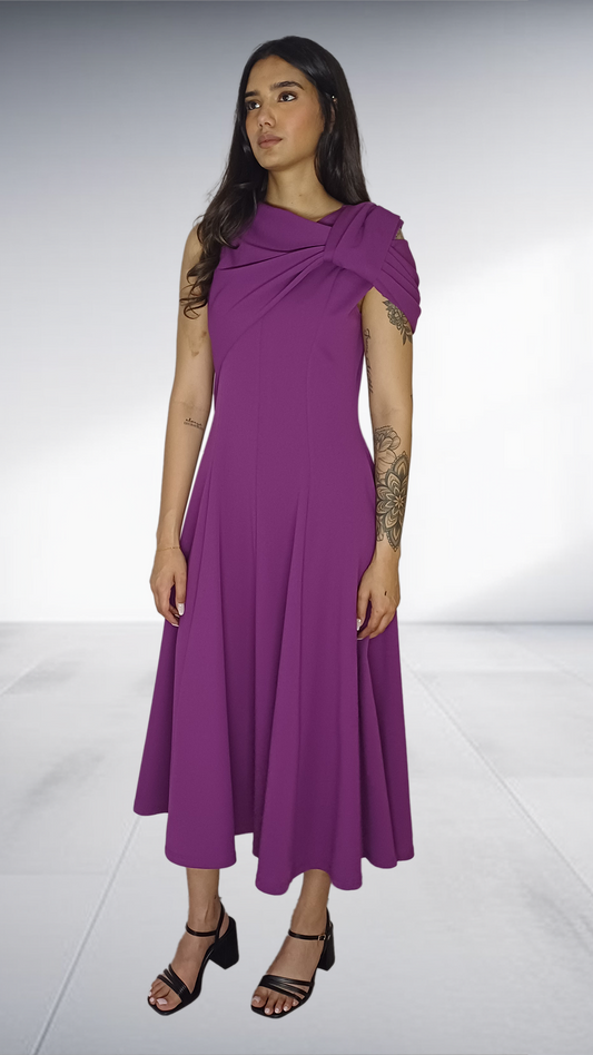 Purple Bow-Detail Midi Dress