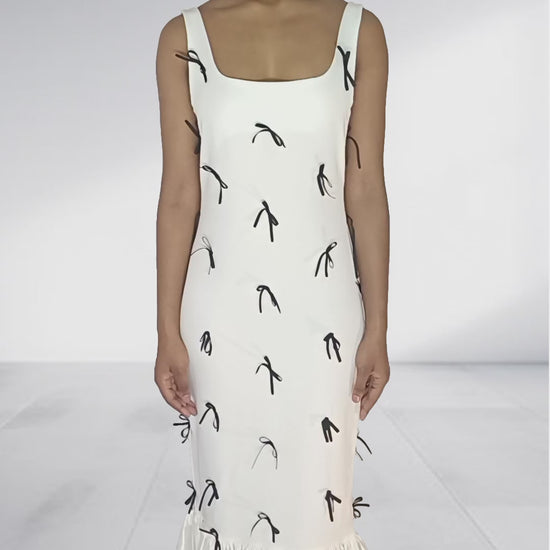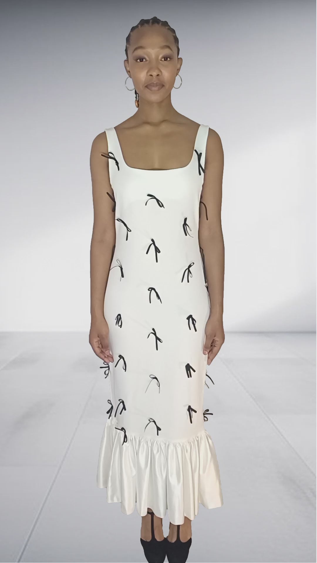 Amp up your style game with the sleeveless midi body-hugging Slip Dress with bow detail! Featuring a trendy square round neck.