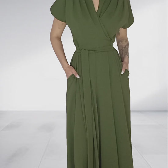 This jumpsuit is perfect for the modern woman who values both style and practicality. Whether you're heading to a garden party, business event, or evening celebration, simply slip into this one-piece wonder and you're instantly dressed to impress. The olive green hue is sophisticated yet fresh, while the wide-leg silhouette ensures all-day comfort without sacrificing elegance.