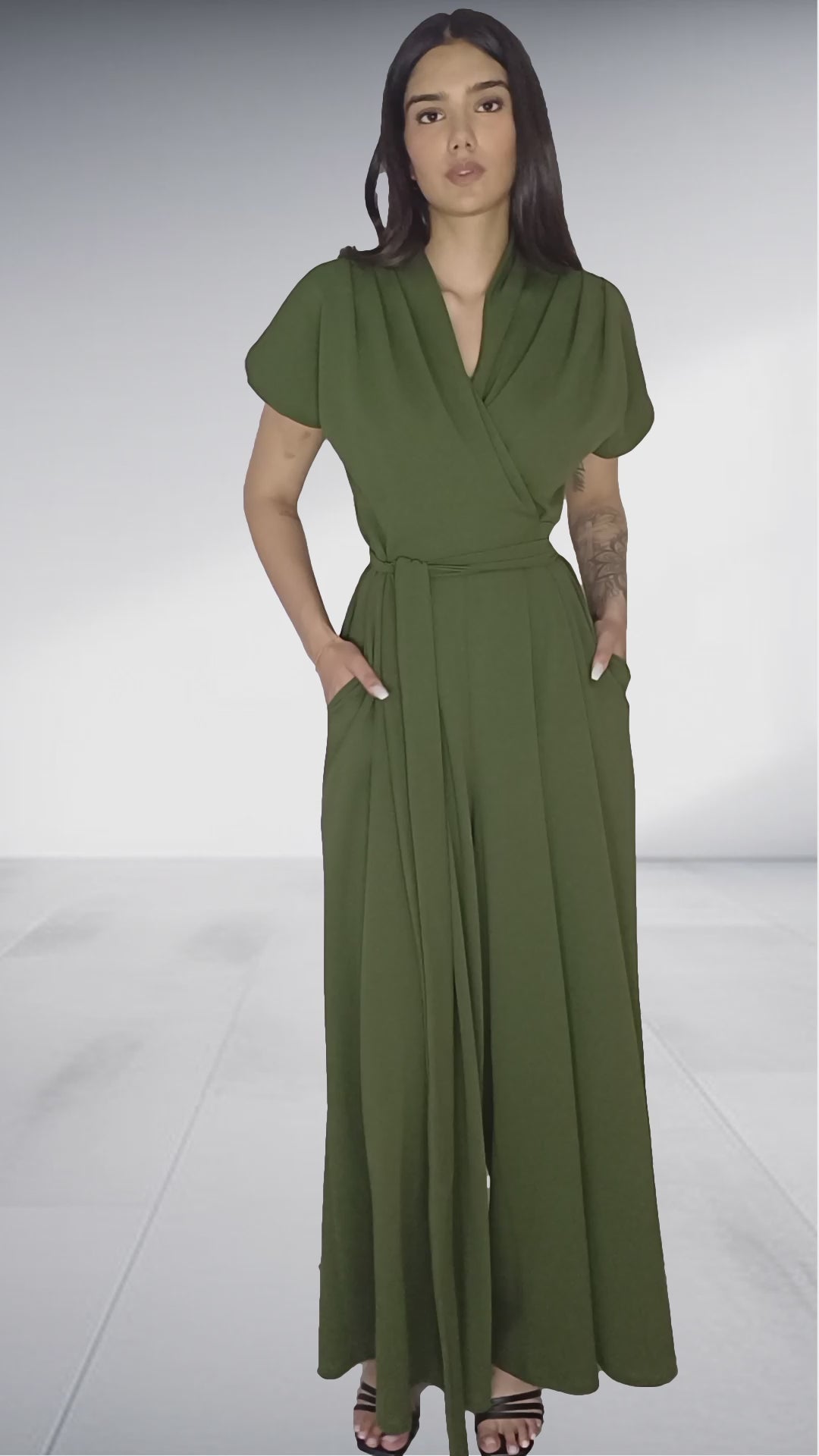 Step into effortless sophistication with this stunning olive green wrap jumpsuit that seamlessly blends comfort with high-fashion style. This versatile piece is your answer to looking polished from day to night.