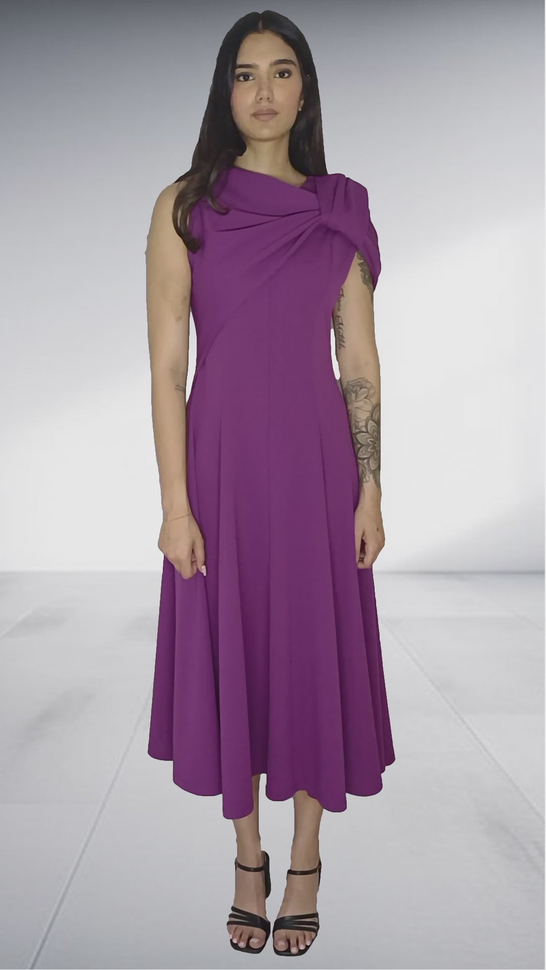 This dress is perfect for the woman who appreciates refined style with a touch of drama. Whether you're attending a wedding, cocktail party, or special celebration, the combination of the sculptural bow detail and flowing midi skirt creates an effortlessly chic look that turns heads for all the right reasons.
